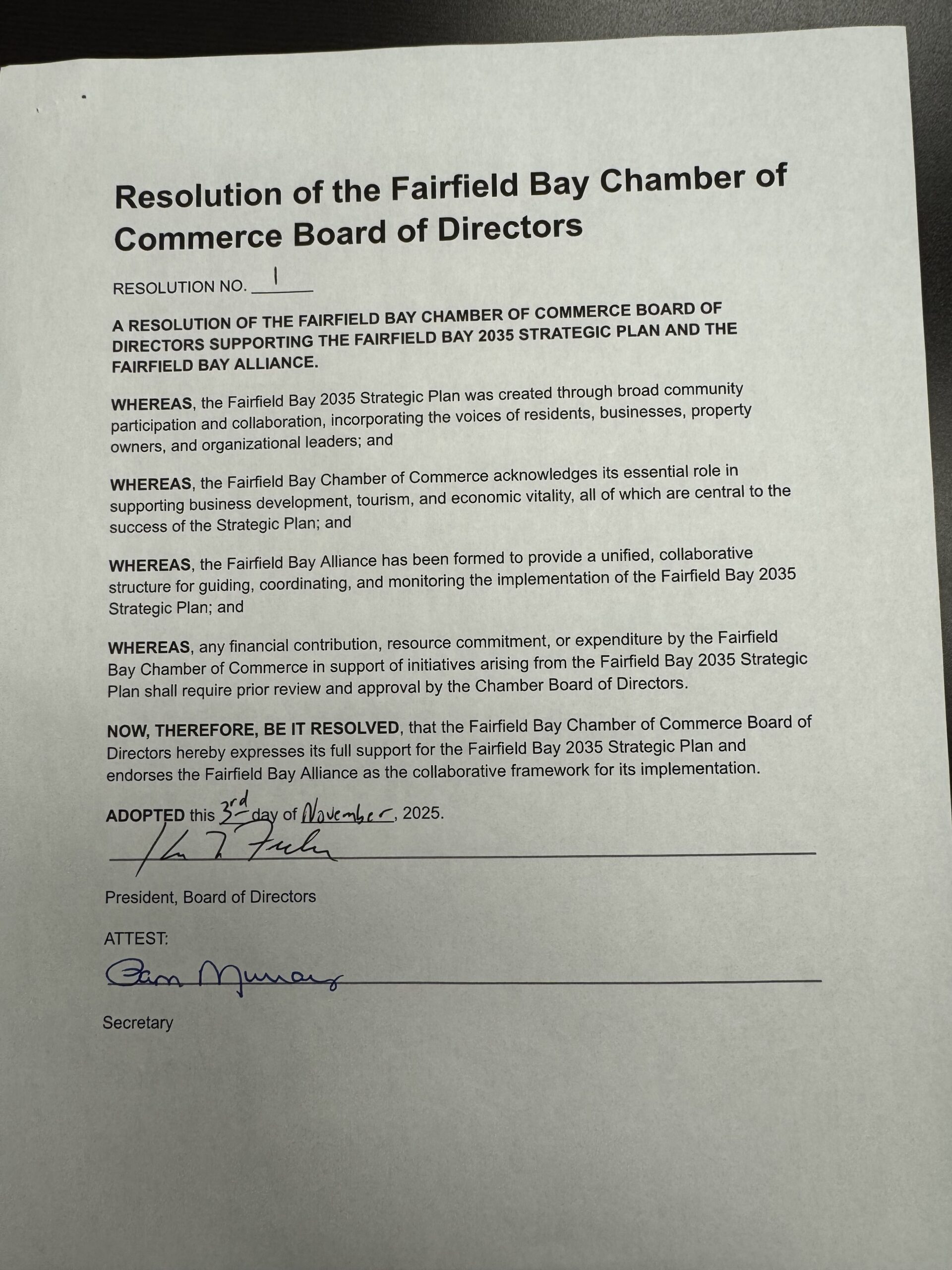 Chamber of Commerce Board Resolution